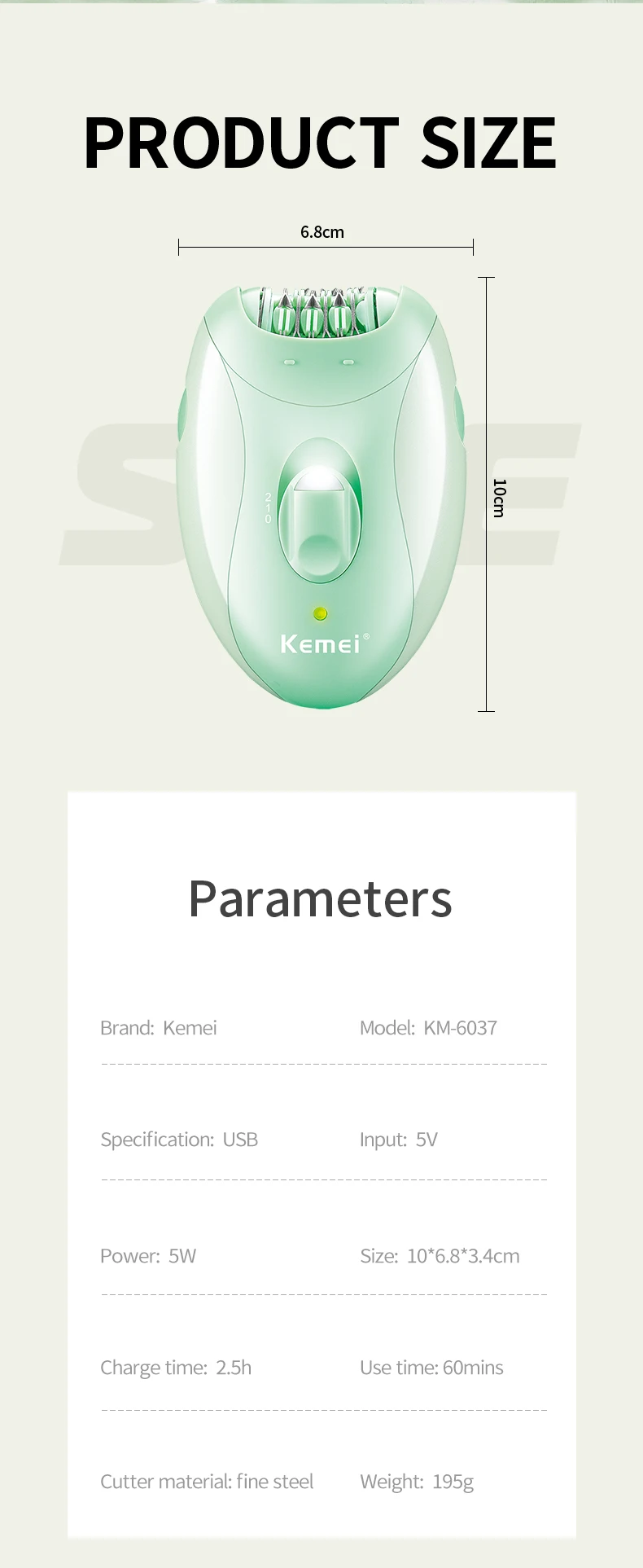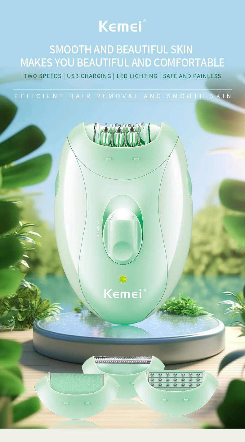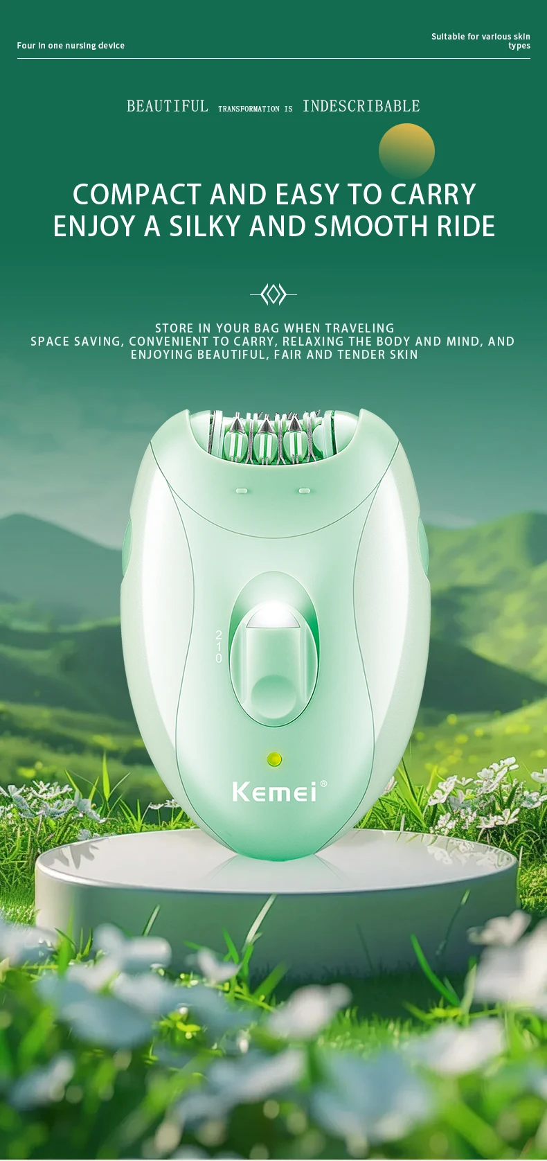 Kemei – Épilateur électrique 4 en 1 pour femme rechargeable par USB, rasage, épilation, massage, pédicure KM-6037