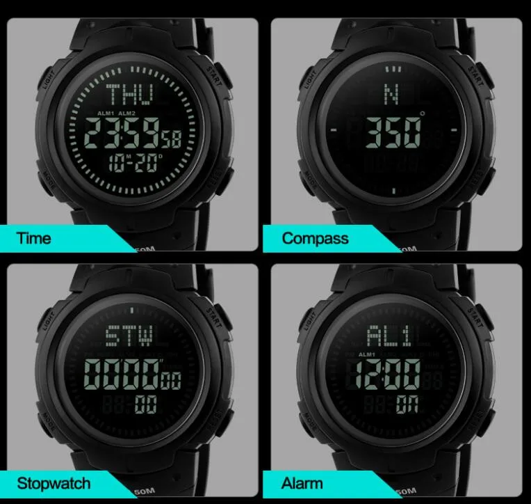 SKMEI Montre chronographe d’extérieur pour hommes, multifonction, étanche, LED, numérique, sport, mode 1231