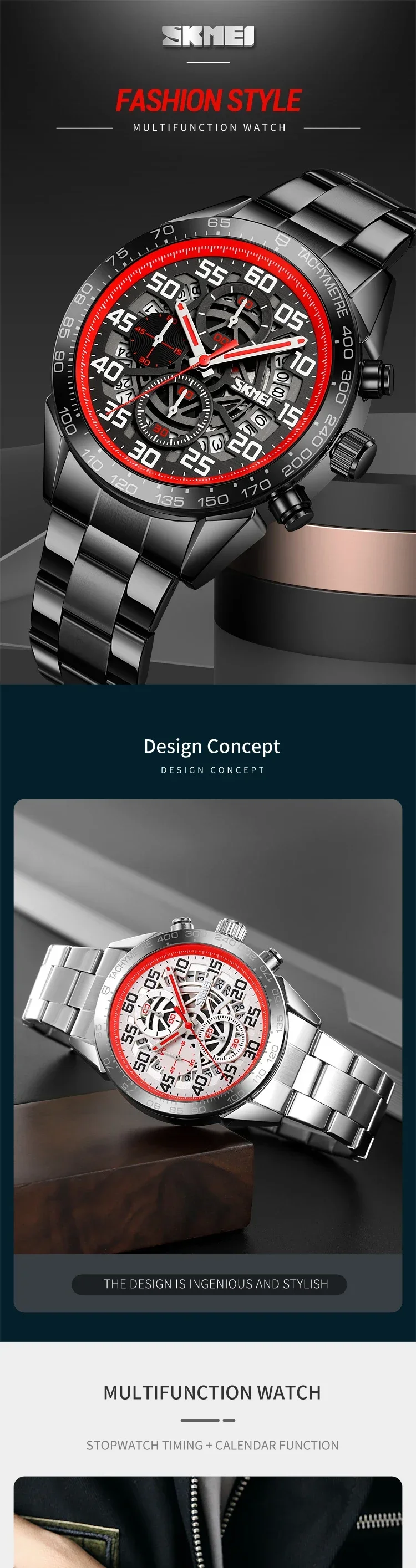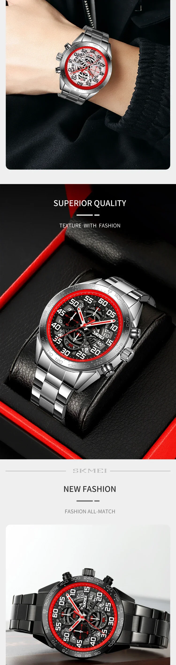 Design élégant : Son grand cadran aux index rouges attrayants affiche un style personnalisé, adapté à diverses occasions et mettant en valeur un sens de la mode unique.